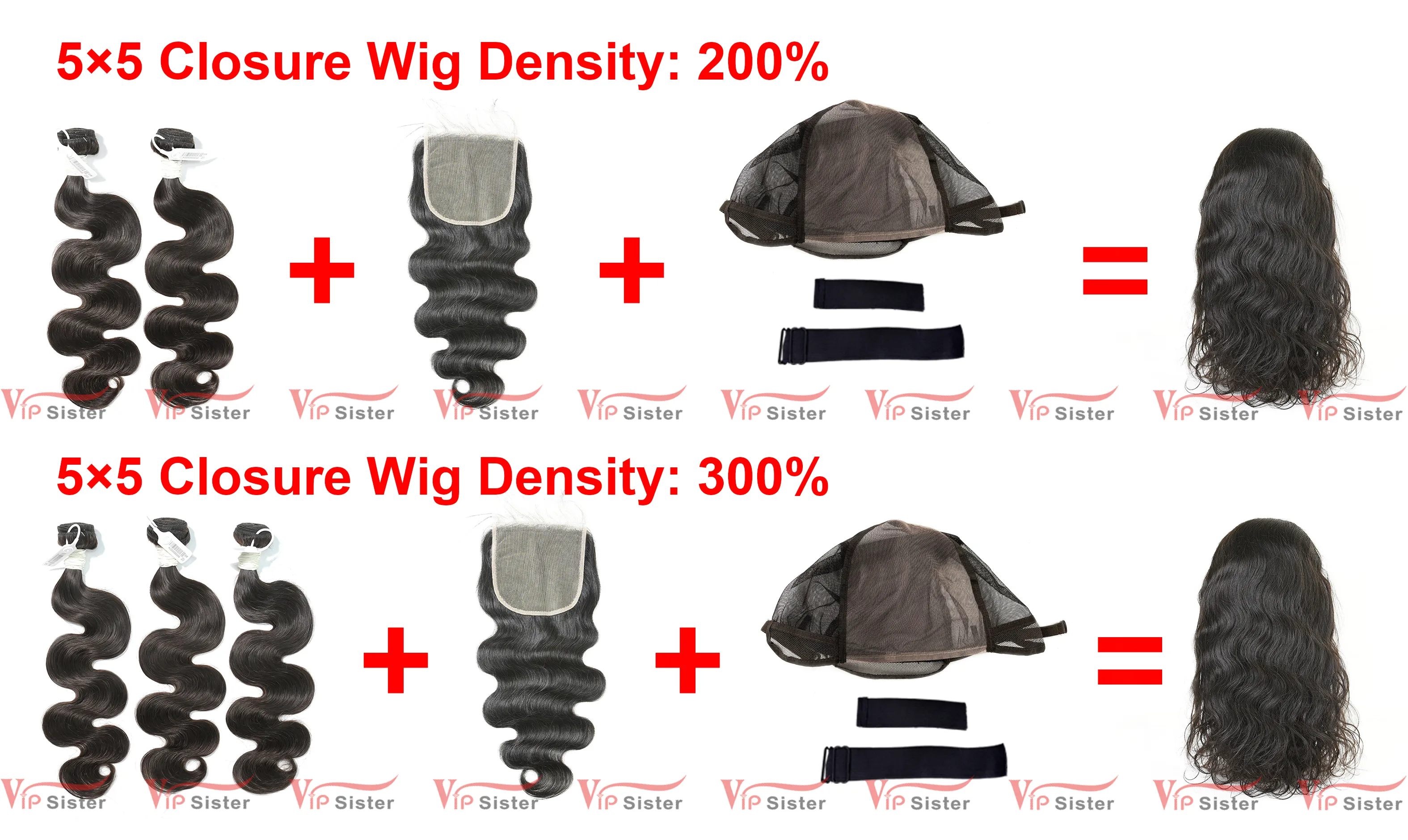 | Density | 200% density (made of 2 bundles with 1 lace closure /frontal) 300% density (made of 3 bundles with 1 lace closure /frontal)  |