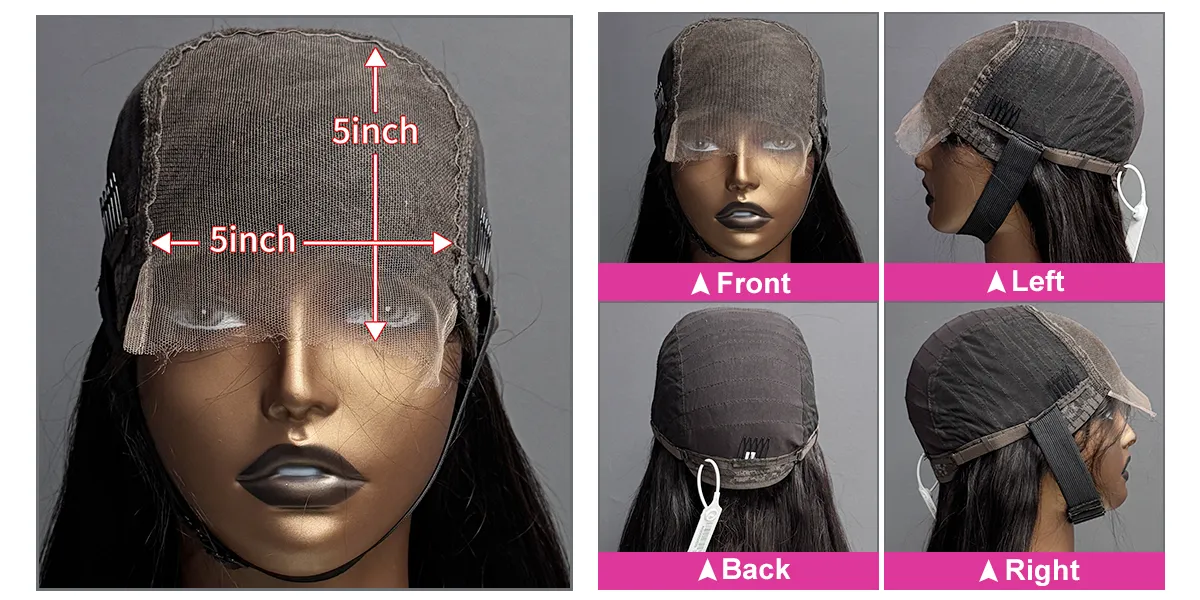 #1b Brazilian Virgin Human Hair Transparent 5x5 Closure Wig Ocean Wave