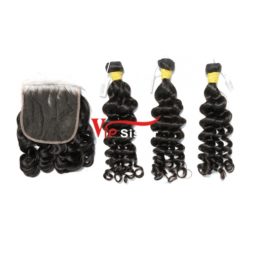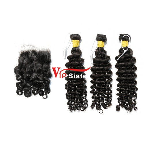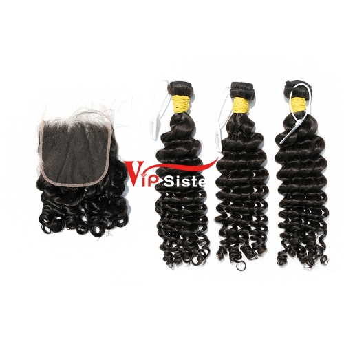 #1b Brazilian Raw Human Hair Weft with 4x4 Closure Deep Curly