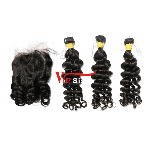 #1b Brazilian Raw Human Hair Weft with 4x4 Closure Loose Wave