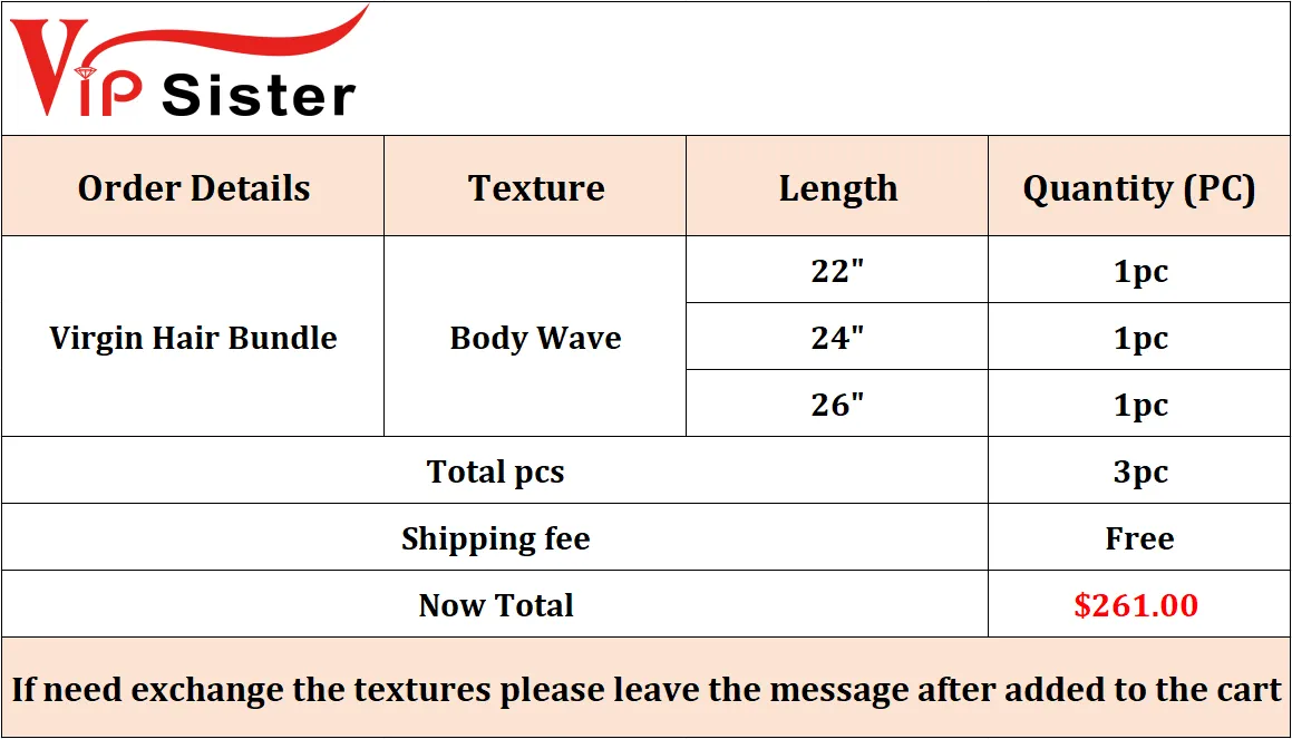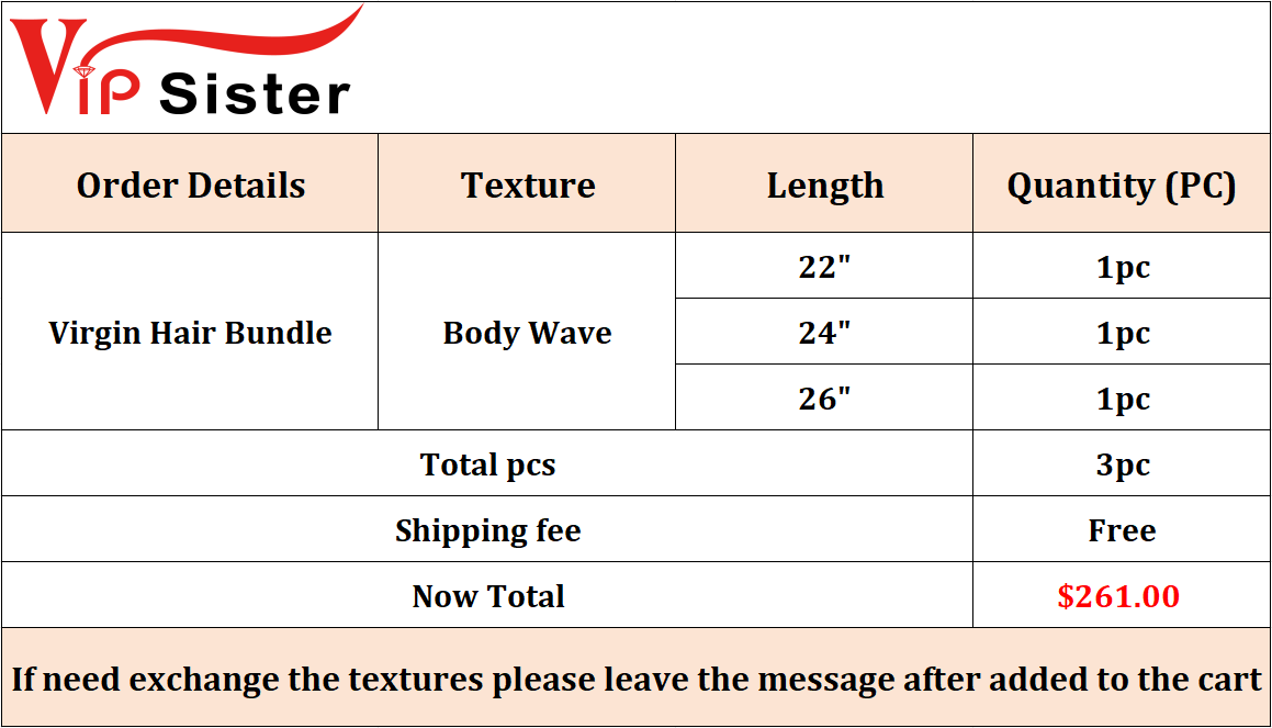 Virgin Body Wave Hair Bundle 22 24 26Inch Free Shipping