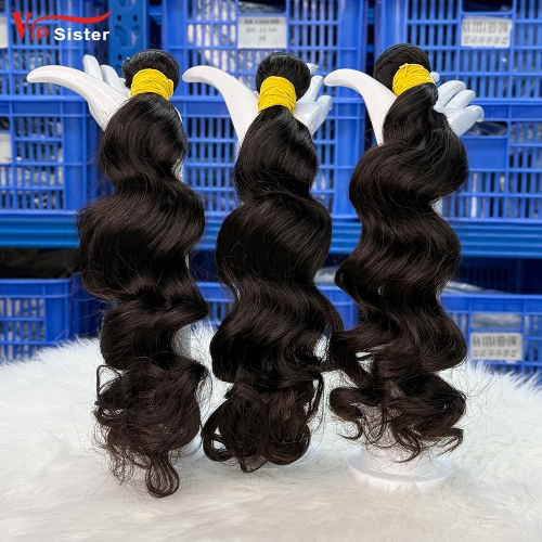 #1b Indian 100% Full Cuticle Raw Human Hair Weft Ocean wave