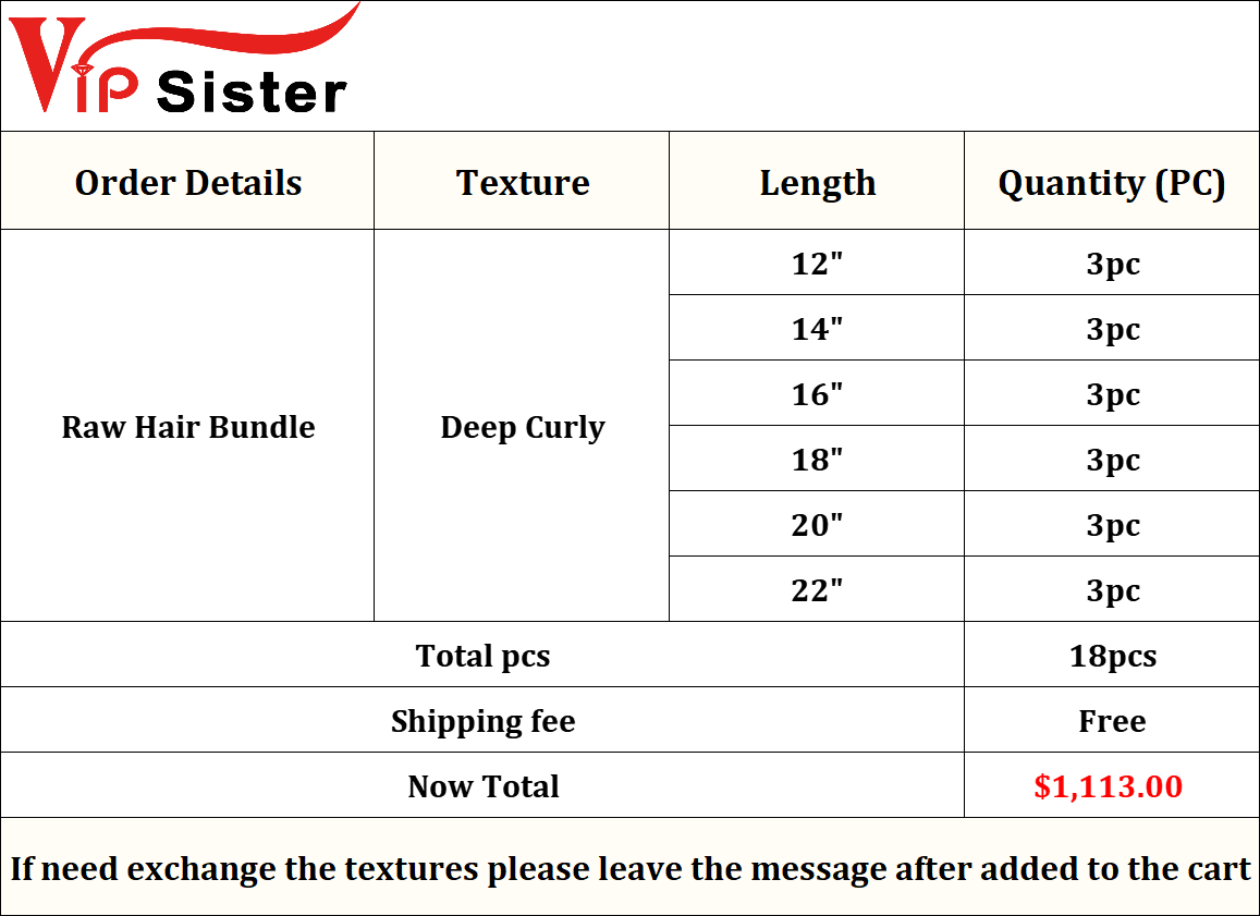 Vipsister 18 pcs indian raw hair bundles total 1113$ free shipping
