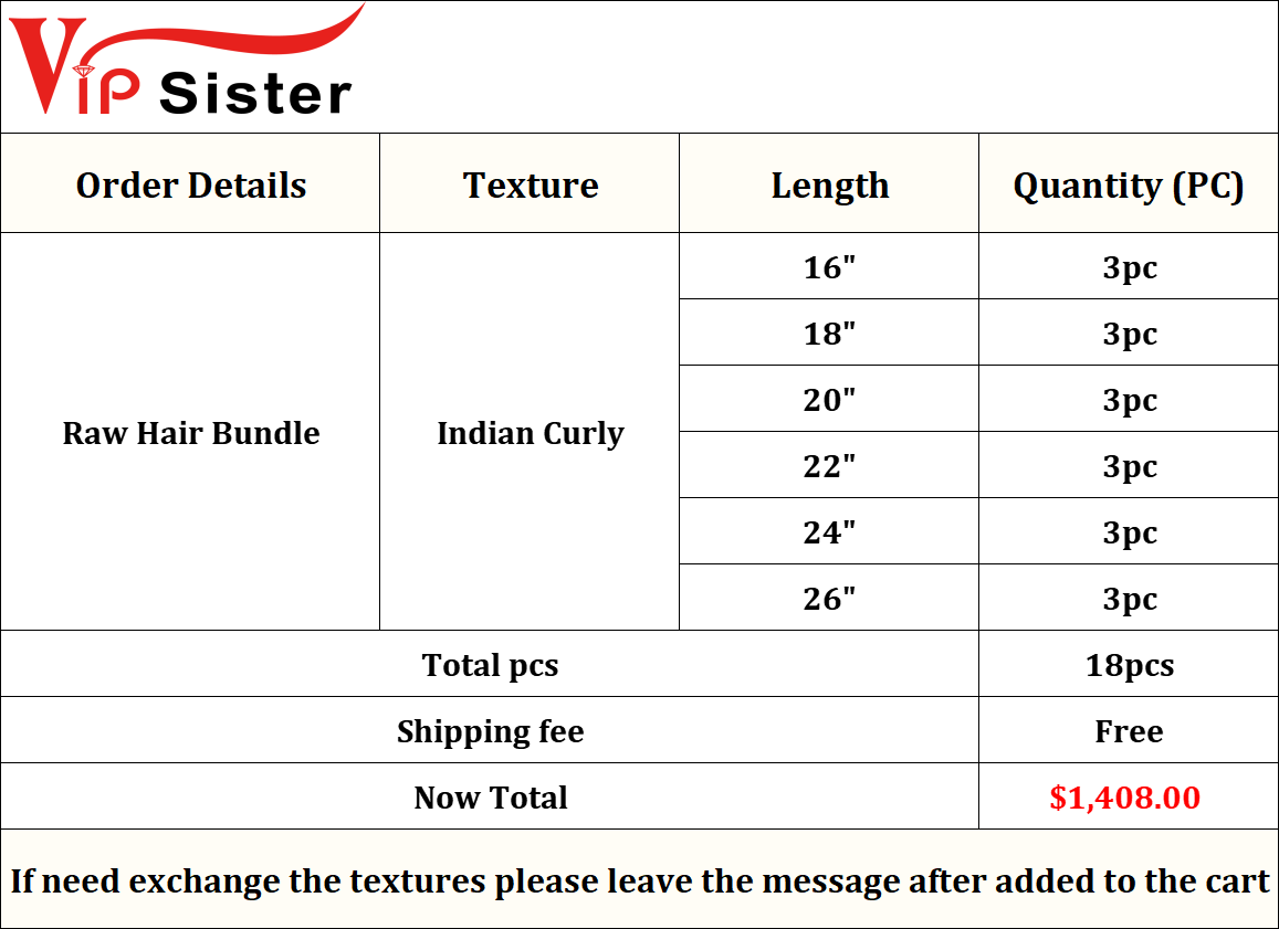 Vipsister 18 pcs indian raw hair bundles total 1408$ free shipping
